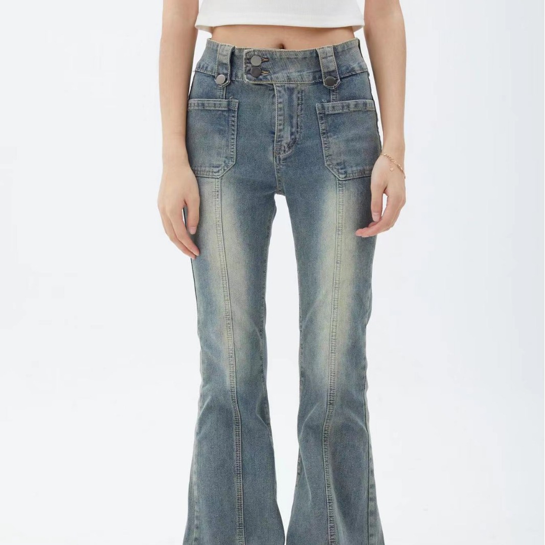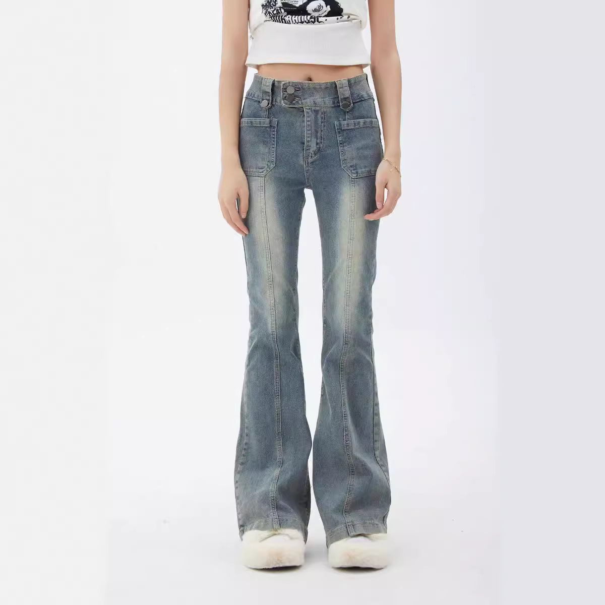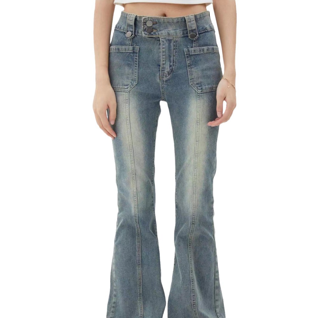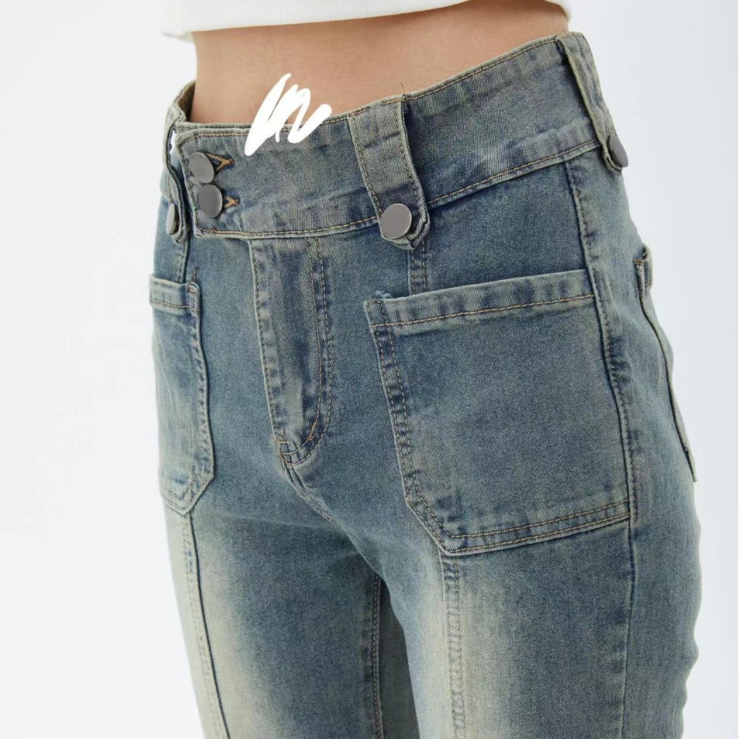 | nameOriginal | Women's retro micro flared jeans, high waist stretch tight slimming straight mop pants, autumn and winter |