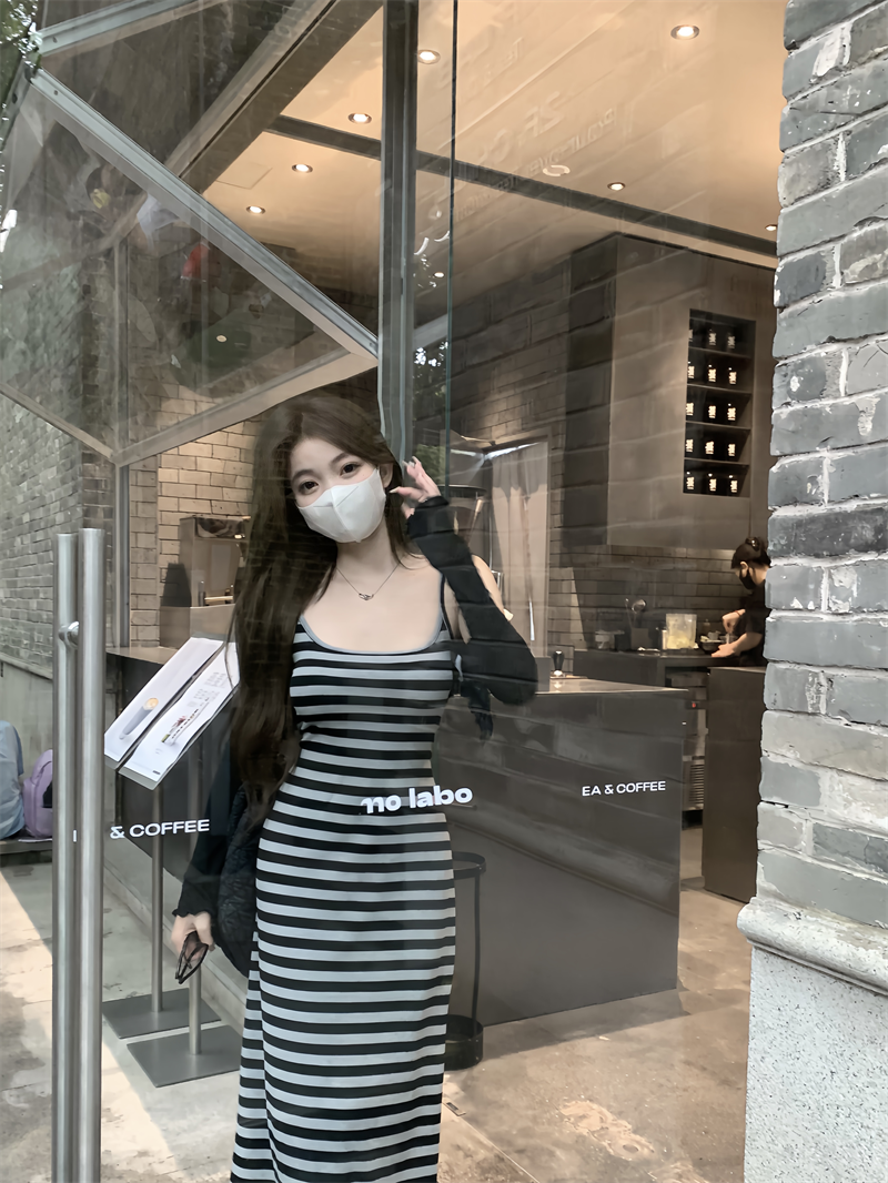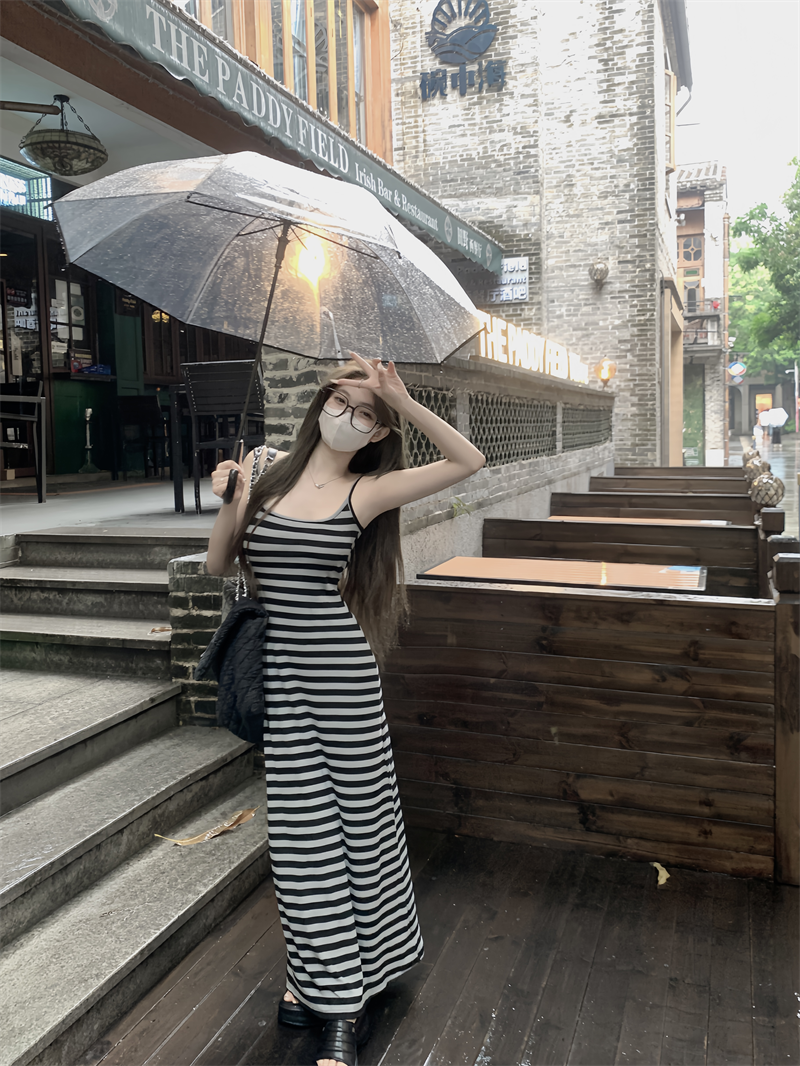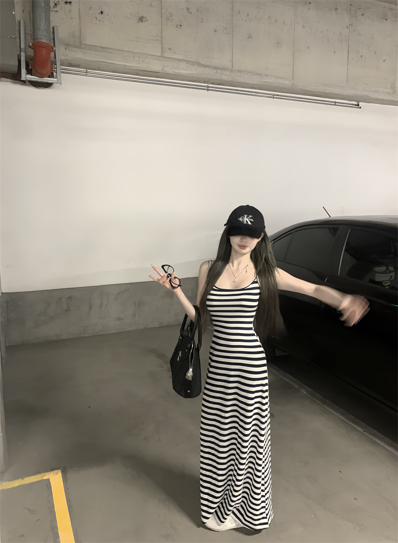 | nameOriginal | Women's retro striped summer slim-fitting suspender dress |