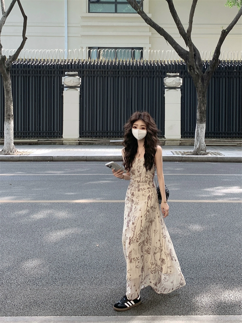 | nameOriginal | Women's retro summer backless suspender dress |