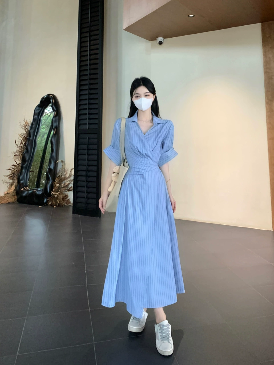 | nameOriginal | Women's retro summer fat mm long skirt striped shirt |