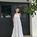 Women’s Retro Summer Hollow Loose A-Line Skirt with Halter Neck