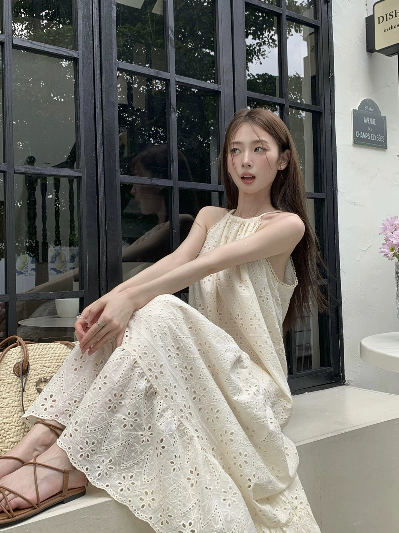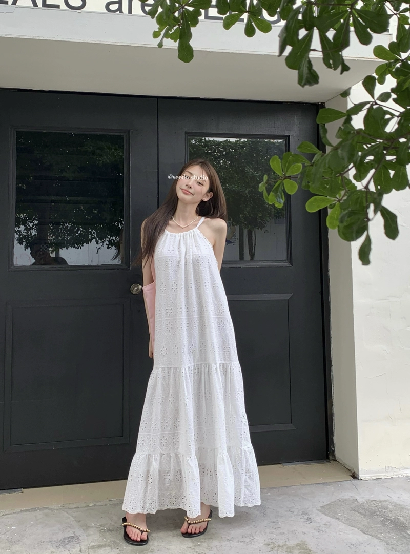 Women's Retro Summer Hollow Loose A-Line Skirt with Halter Neck