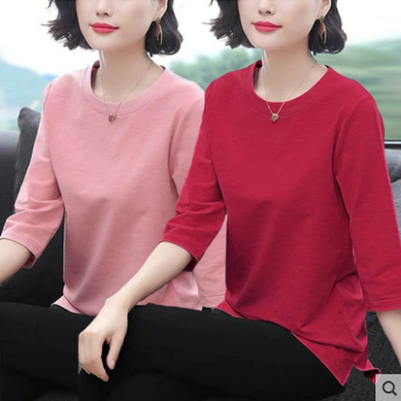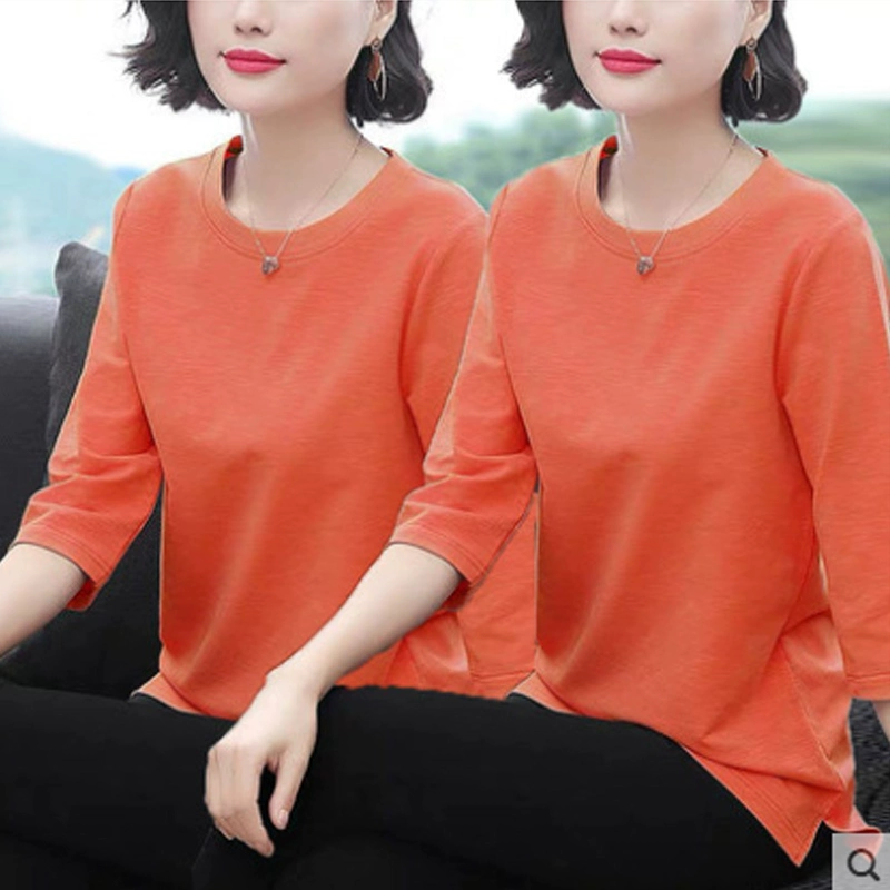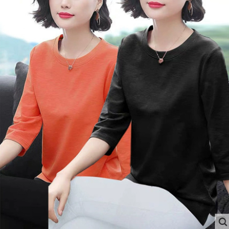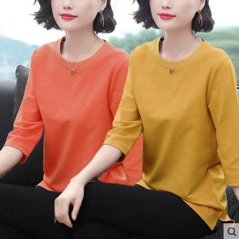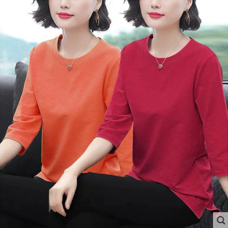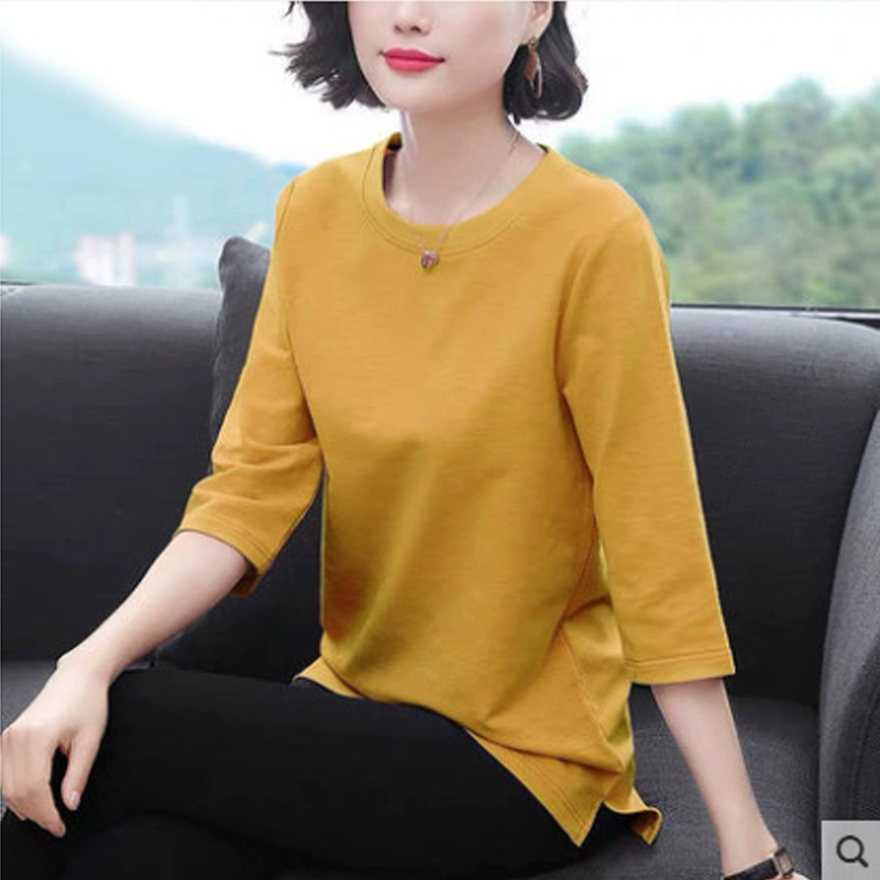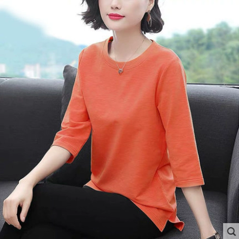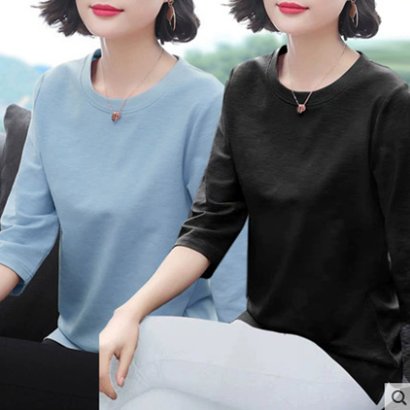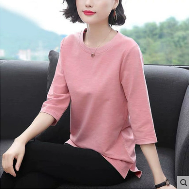 Women’s retro seven -point sleeve T -shirt in summer and summer literature