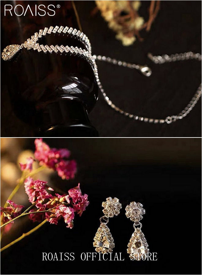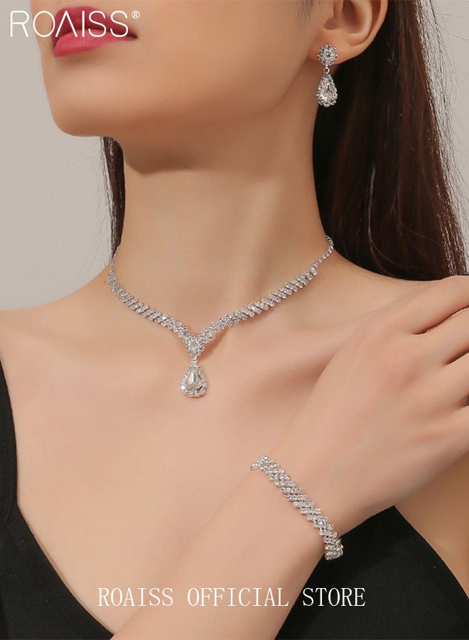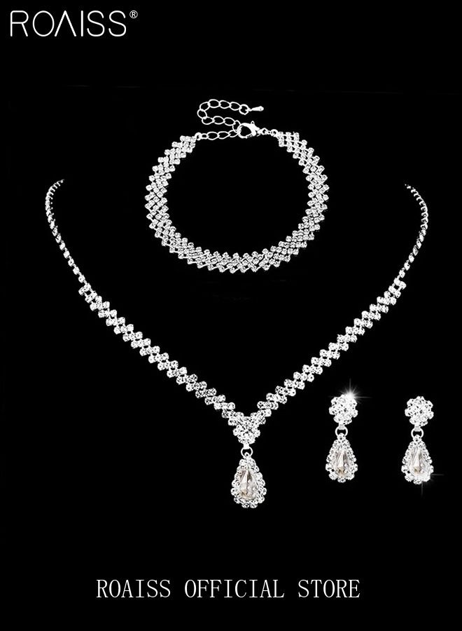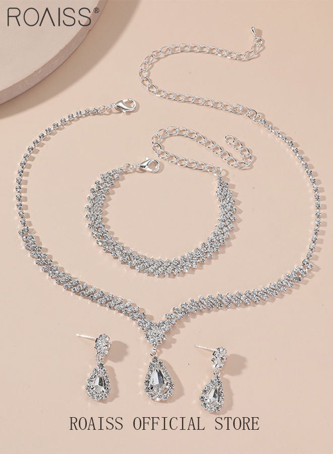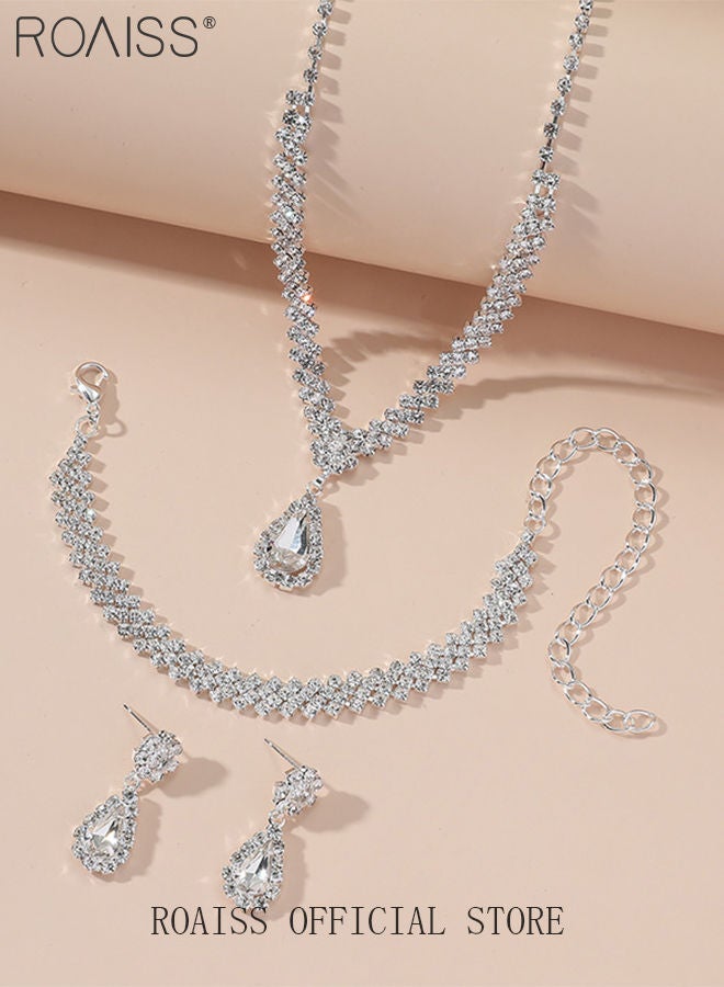 | nameOriginal | 4 Pcs Rhinestone Necklace Earrings Bracelet Set Drop-Shaped Pendant V-Neck Chain Ear Dangle Bridal Evening Dress Accessories for Women |