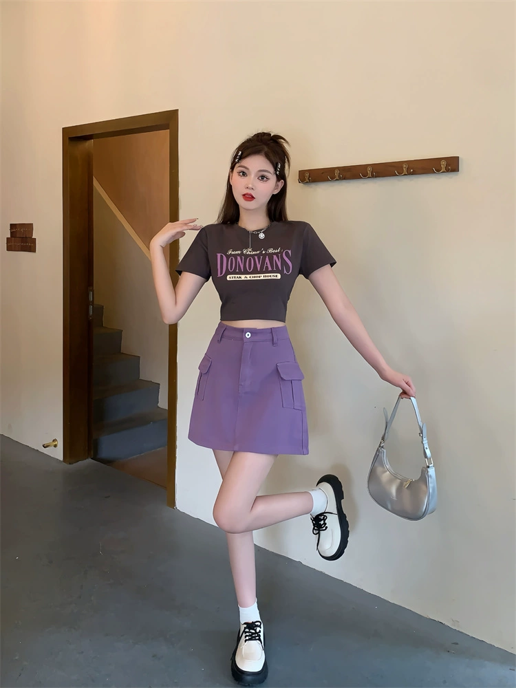 | nameOriginal | Women's Right Shoulder Short Sleeve T-Shirt A Line Denim Hip Cover Summer Wear |