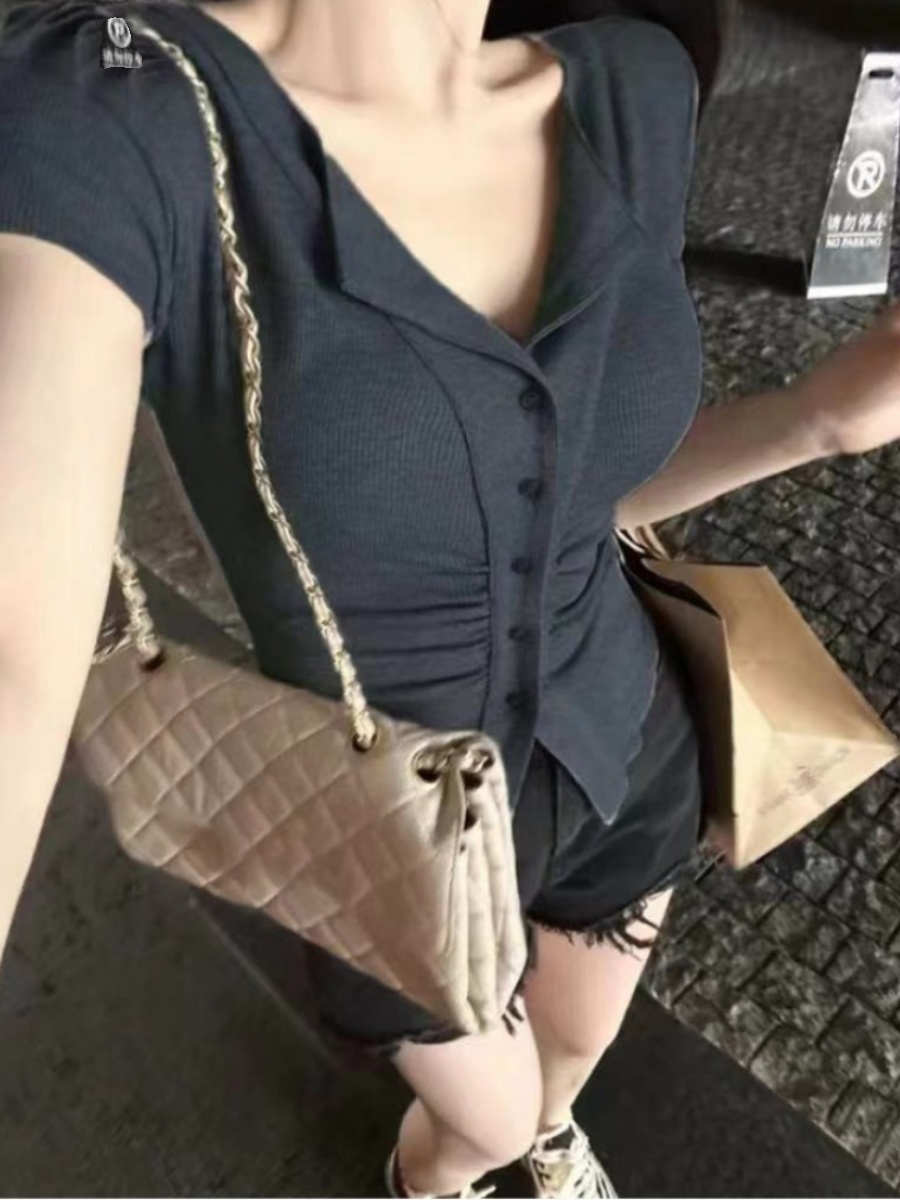 | nameOriginal | Women's right shoulder summer cardigan top short sleeve t-shirt |
