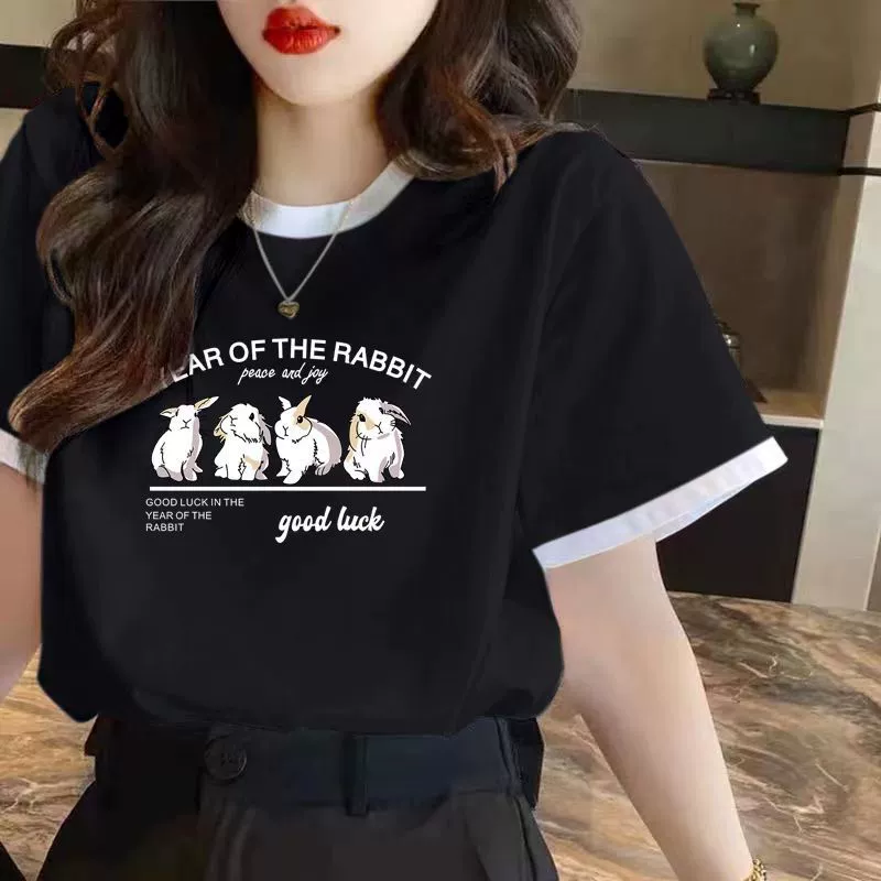 | nameOriginal | Women's right shoulder summer pure cotton contrasting short-sleeved T-shirt |