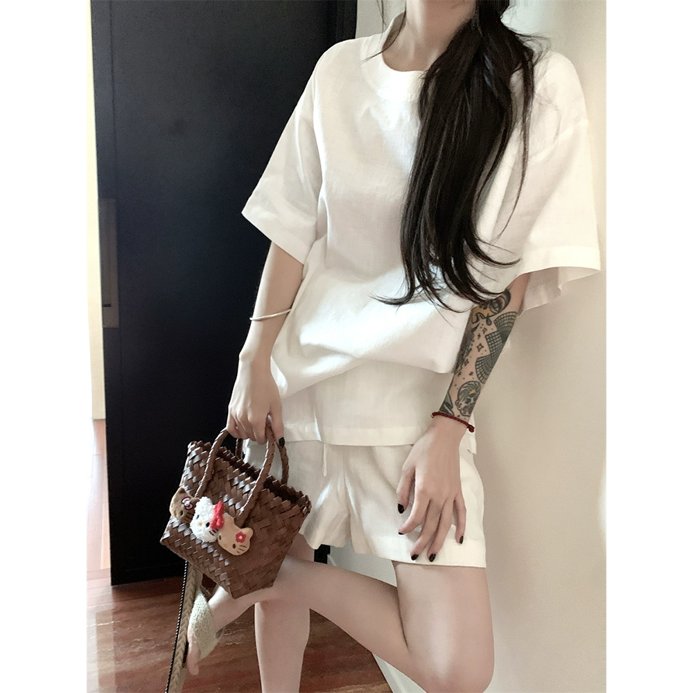 | nameOriginal | Women's Round Neck Elastic Waist Solid Color Casual Short Sleeve T-Shirt |