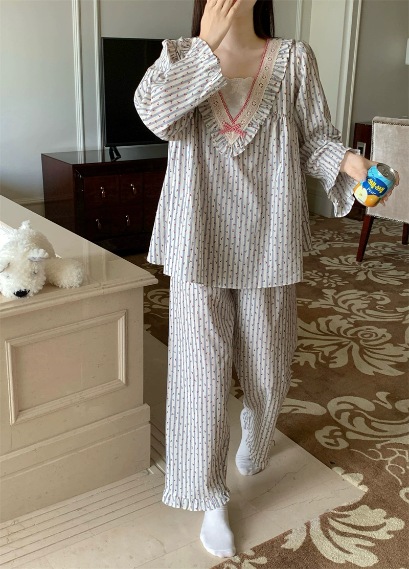 | nameOriginal | Women's ruffled V-neck cotton home wear pajamas |