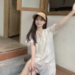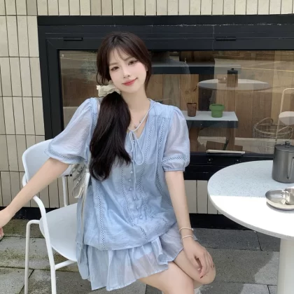Women’s Salty or Sweet Puff Sleeve High Waist Slim Shirt