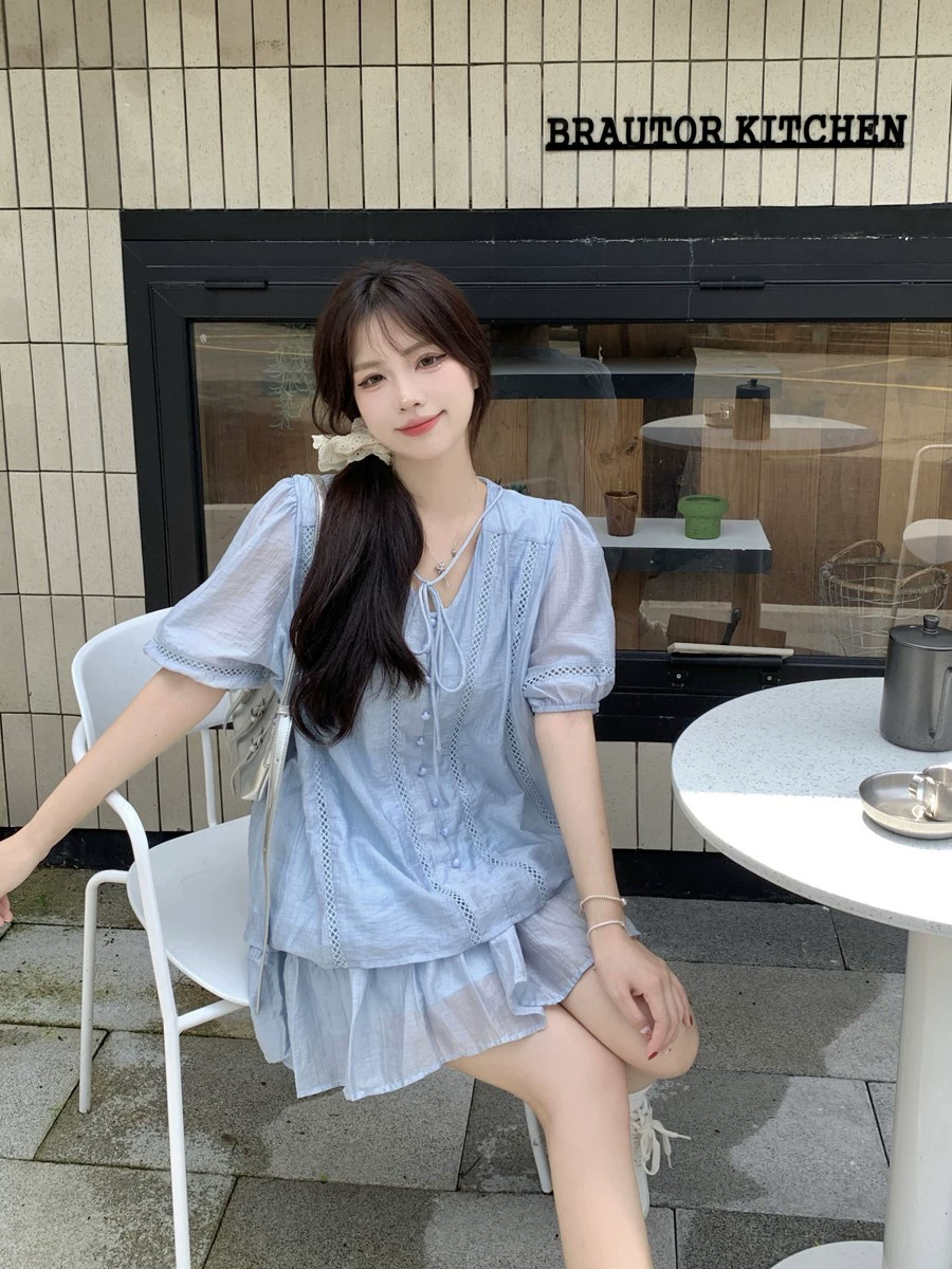 Women's Salty or Sweet Puff Sleeve High Waist Slim Shirt