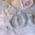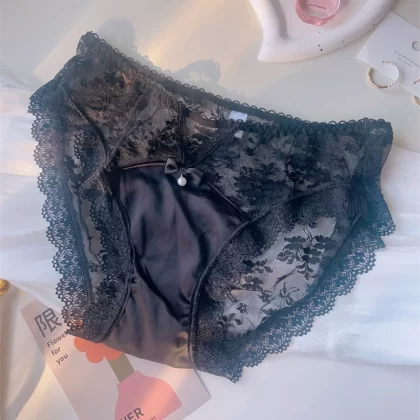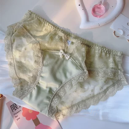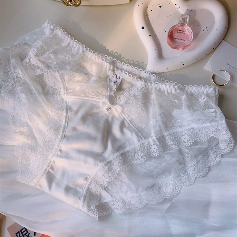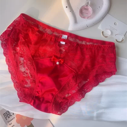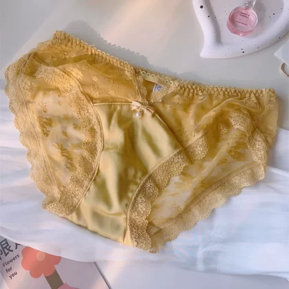 | nameOriginal | Women's satin fabric pearl lace large size briefs with hollow sexy mid-low waist pure cotton Japanese style fat |