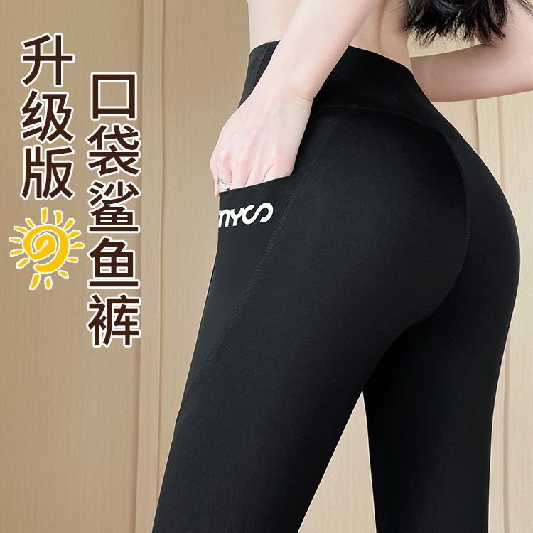 | nameOriginal | Women's shark pants with pockets summer thin high waist hip lifting belly contracting yoga Barbie riding leggings spring and autumn |