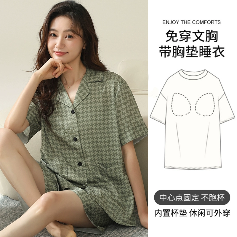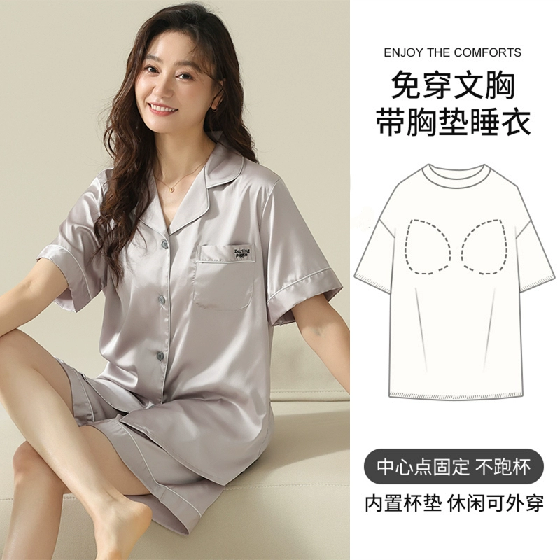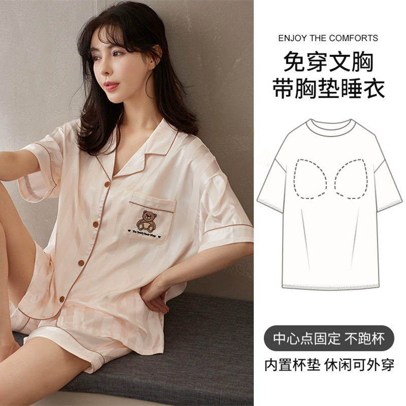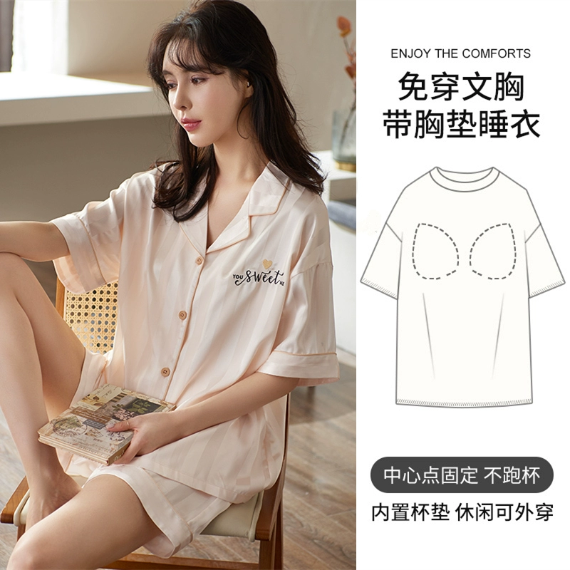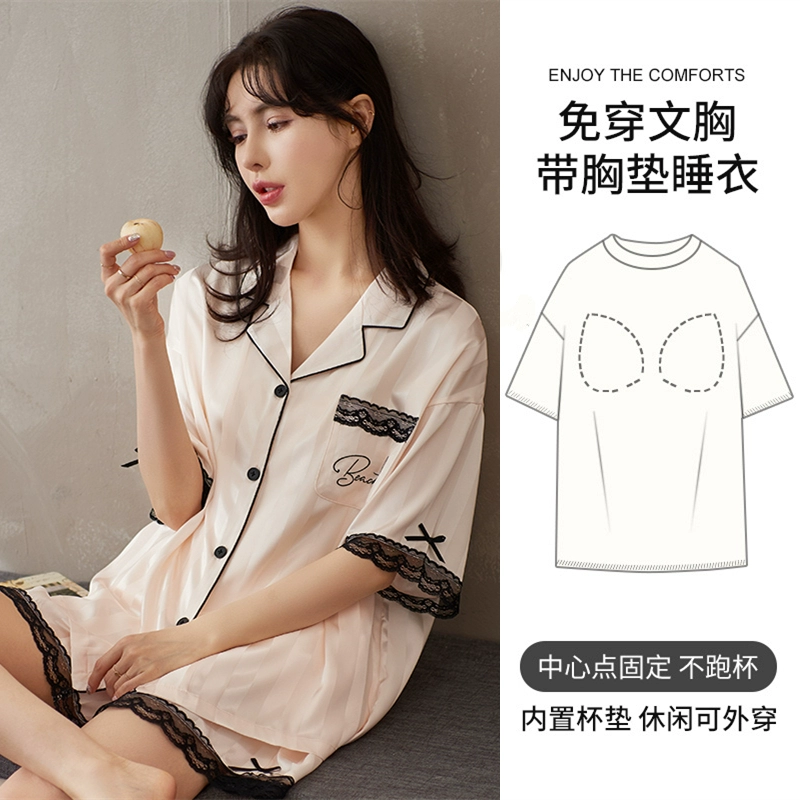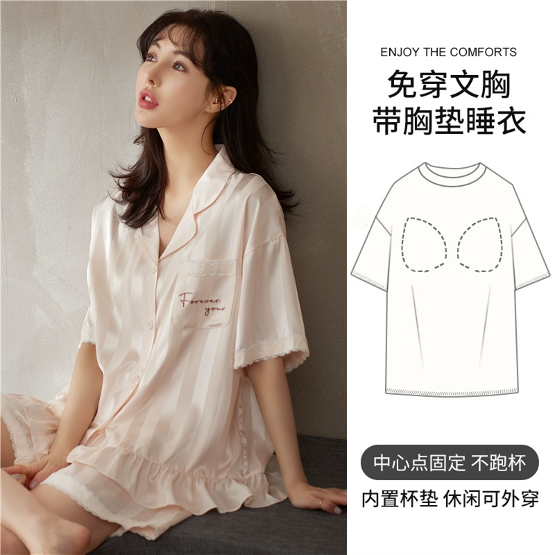 | nameOriginal | Women's short-sleeved cardigan and sweet silk pajamas with padded breasts |