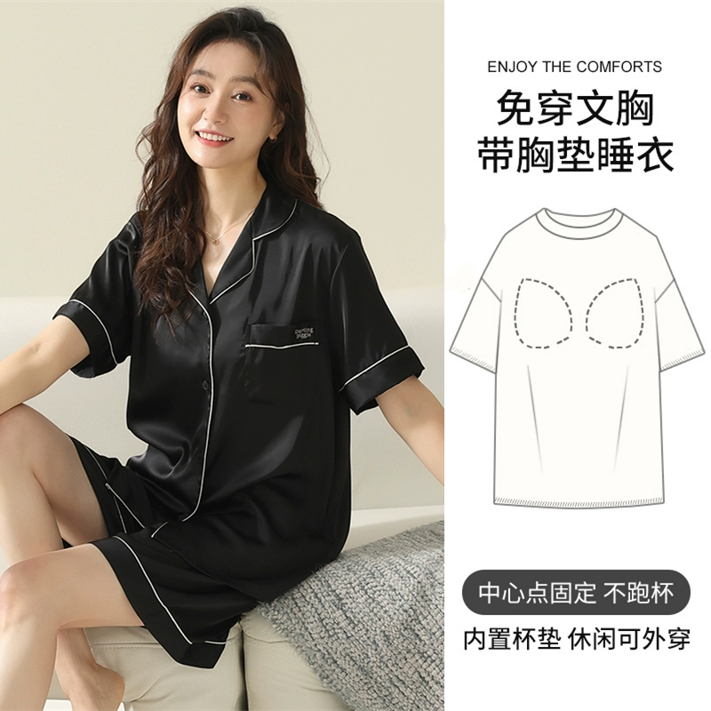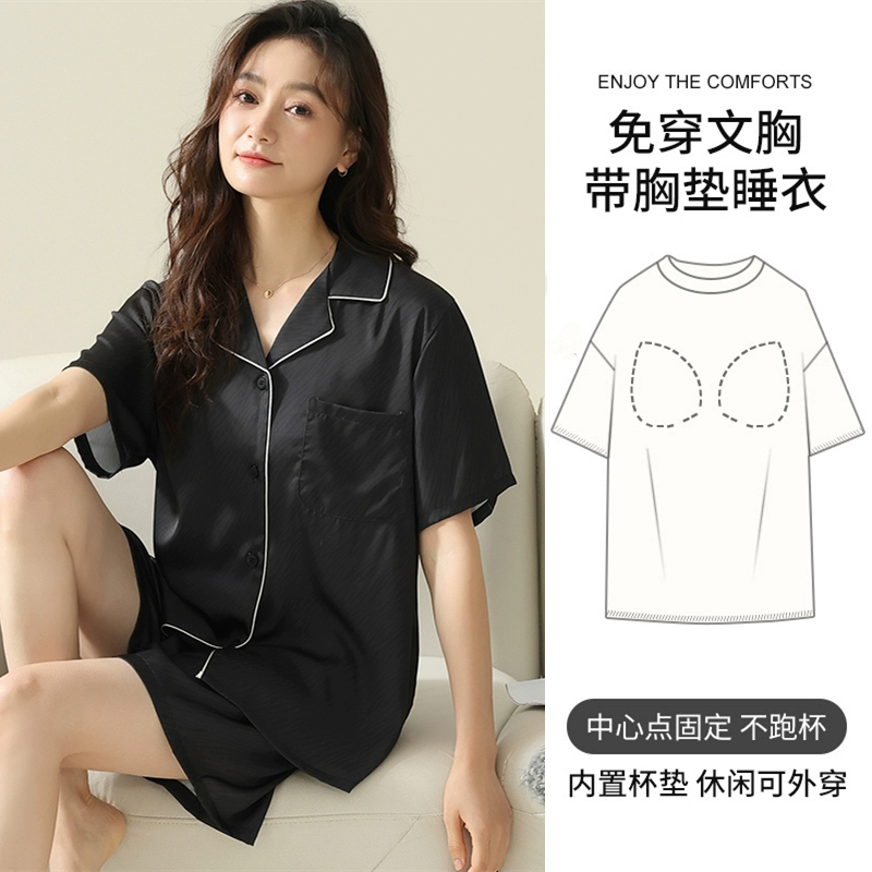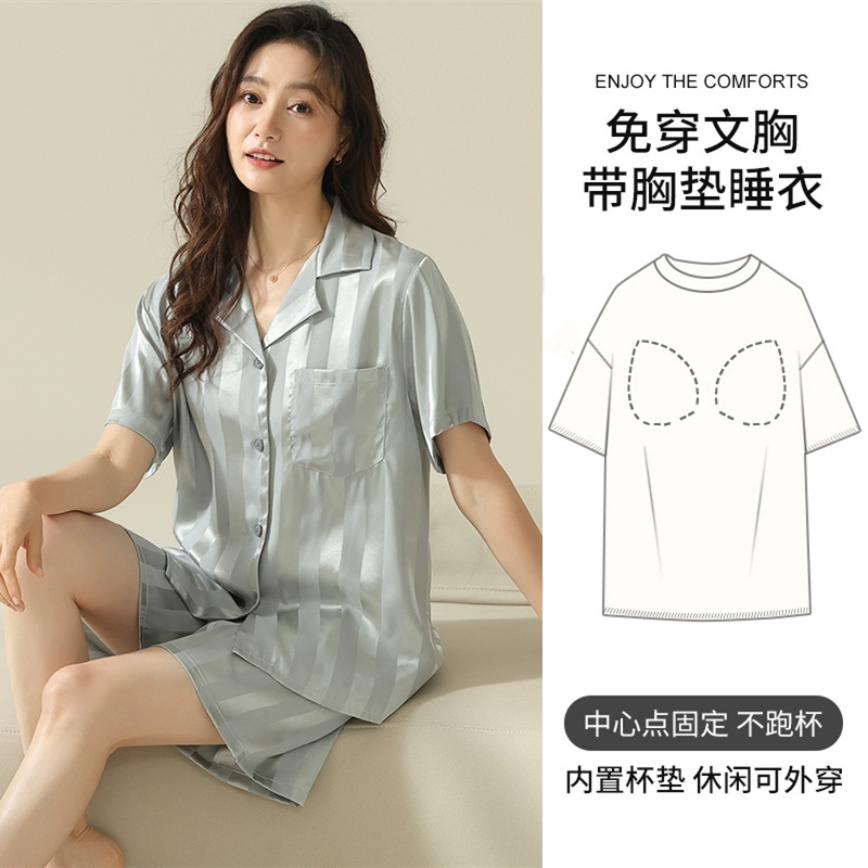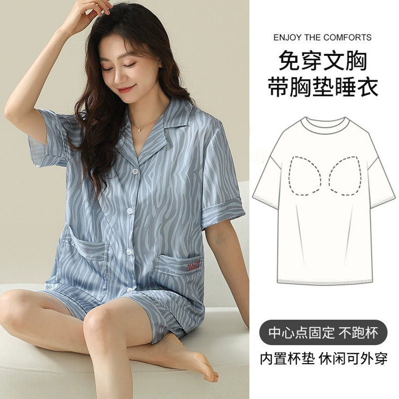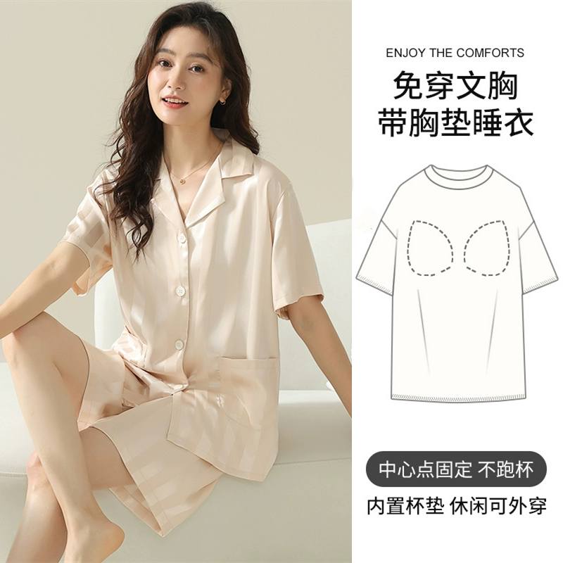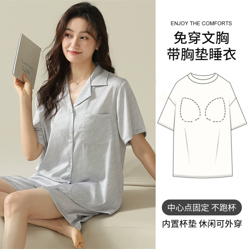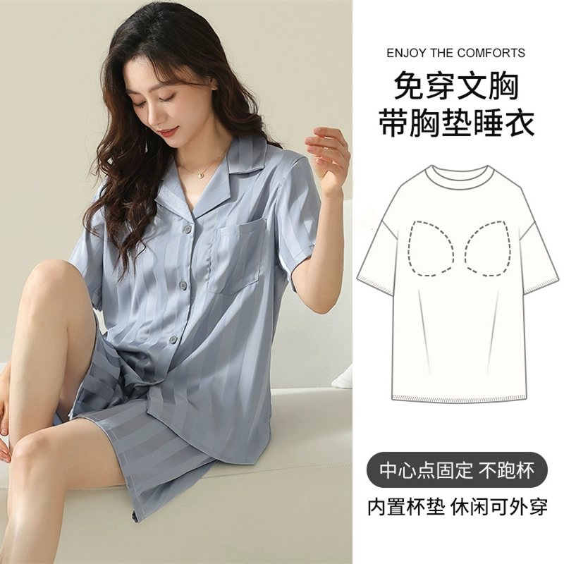 | nameOriginal | Women's short-sleeved cardigan and sweet silk pajamas with padded breasts |