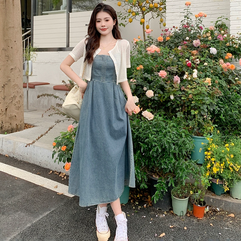 | nameOriginal | Women's short-sleeved denim dress for fat girls with pear shape |