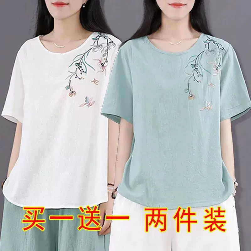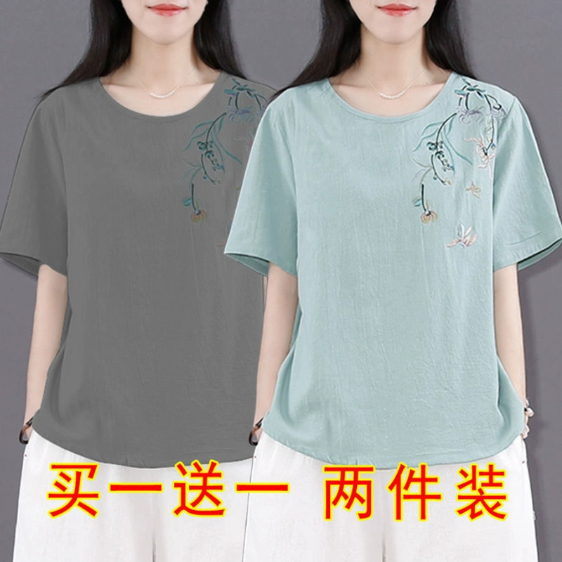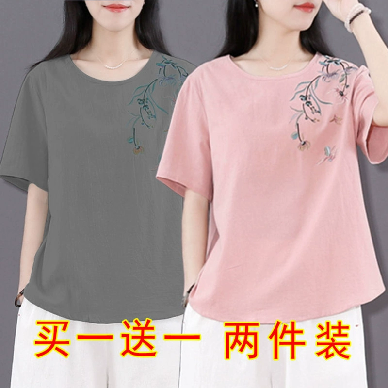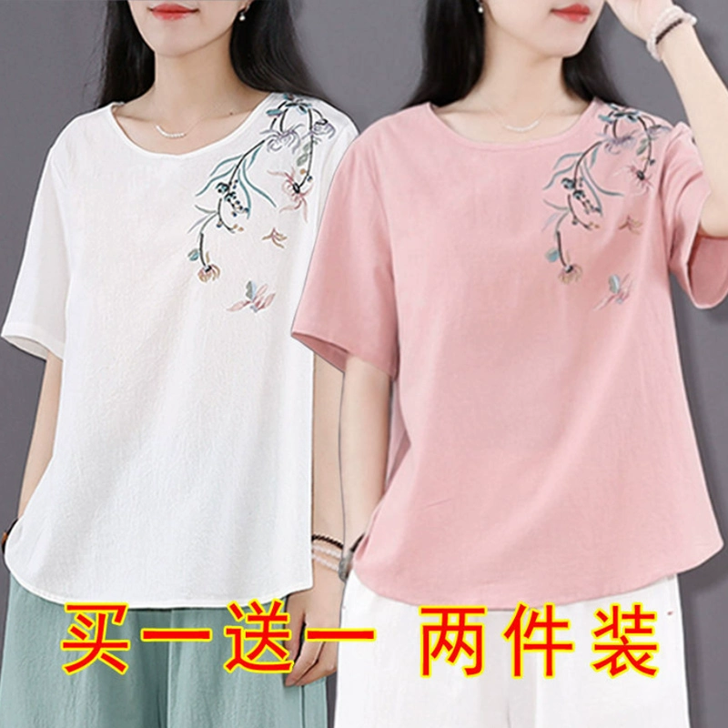 | nameOriginal | Women's short-sleeved loose cotton and linen printed T-shirts |