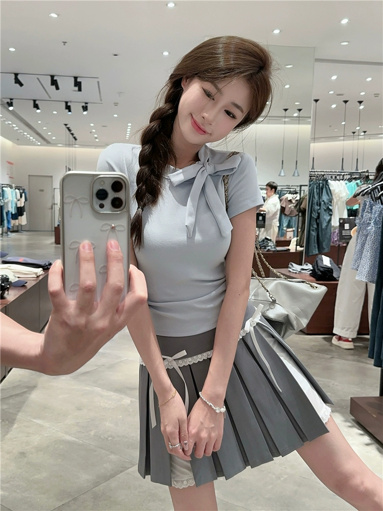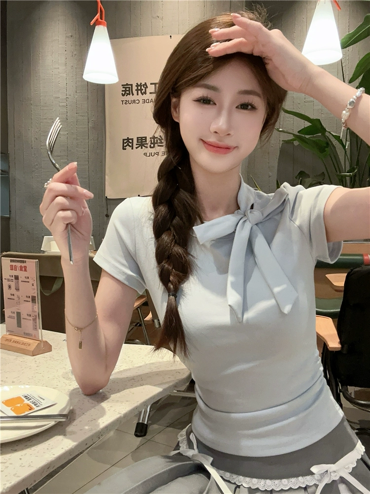 | nameOriginal | Women's short-sleeved right-shoulder summer waist-cinching bow tie |