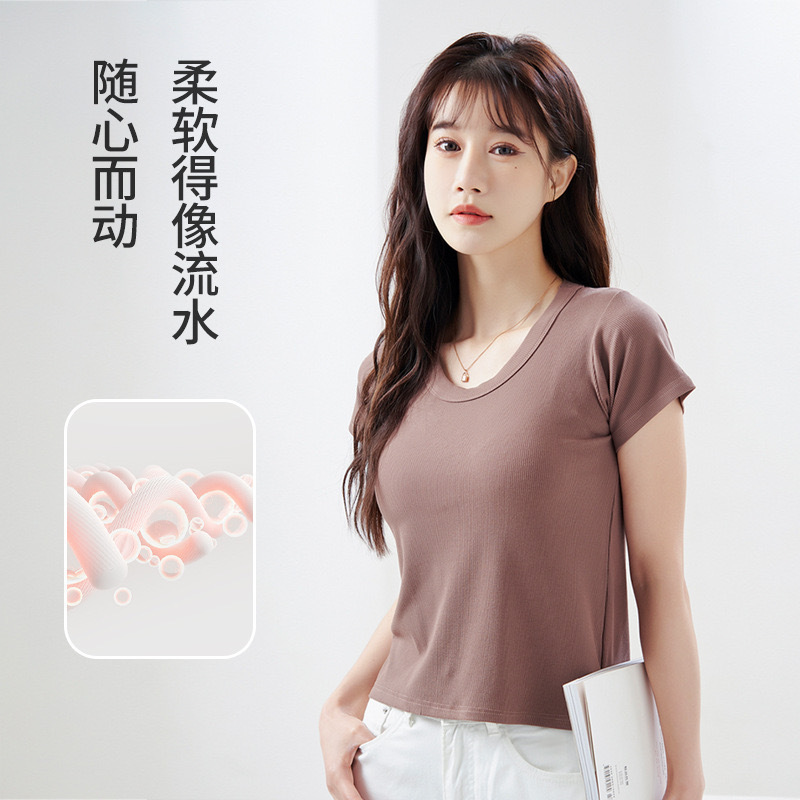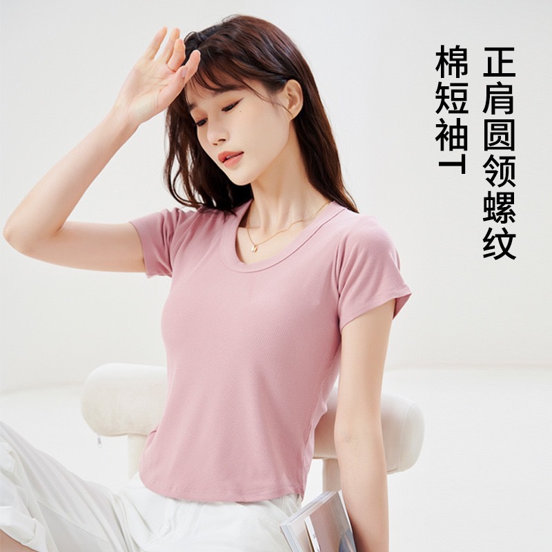 | nameOriginal | Women's Short-sleeved Shoulder T-shirt for Summer Simple All-match Base Elastic Body-fit Inner Slim-fit Round Neck Top T-shirt |