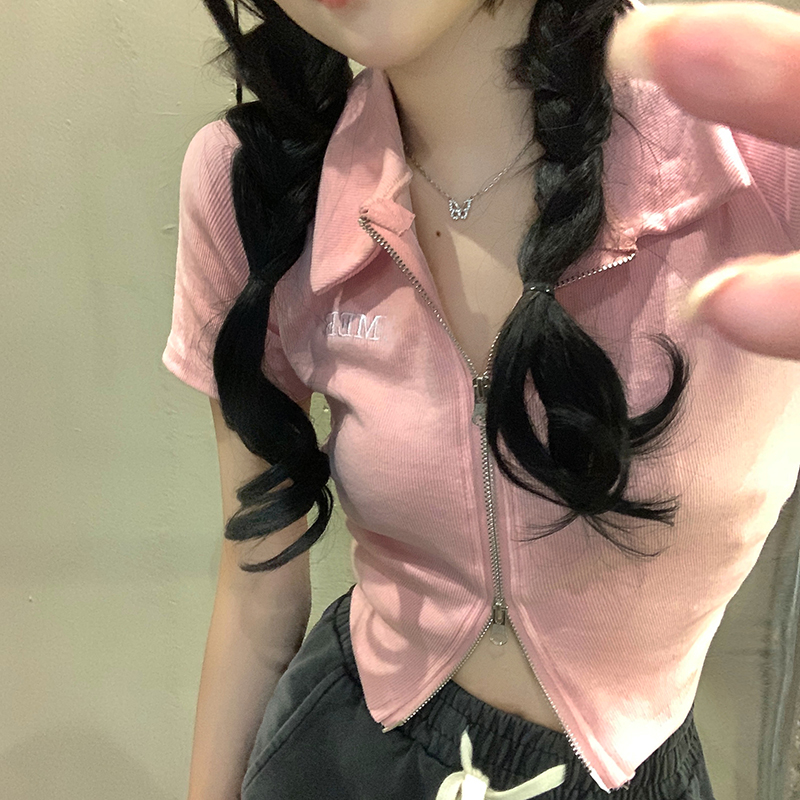 | nameOriginal | Women's short-sleeved shoulder T-shirt summer 2023 new design polo collar sweet hot girl short niche unique top |