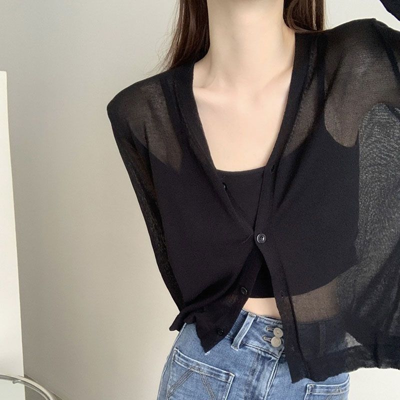 | nameOriginal | Women's Short Sunscreen Cardigan with Shawl for Summer Ice Silk Knitted Small Waistcoat Thin Long Sleeve Skirt with Suspenders |