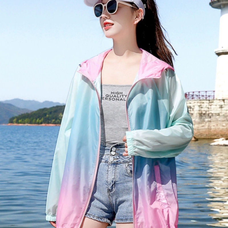 Women's Short Sunscreen Clothing 2024 Summer New Fashion Color Matching Loose Breathable Lightweight Sunscreen Clothing Colorful Outfit