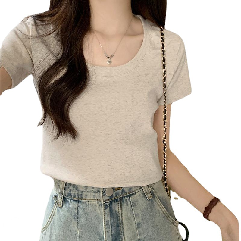 | nameOriginal | Women's Short T-Shirt with U-Neck Short Sleeve Summer 95 Cotton Slim-Fit Low Round Neck Basic Solid Color All-Match Slim Shoulder Top |