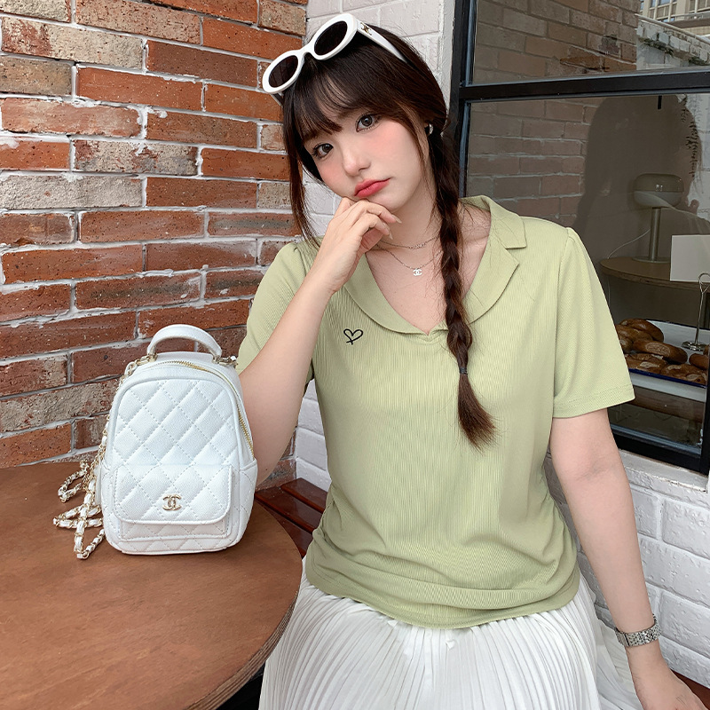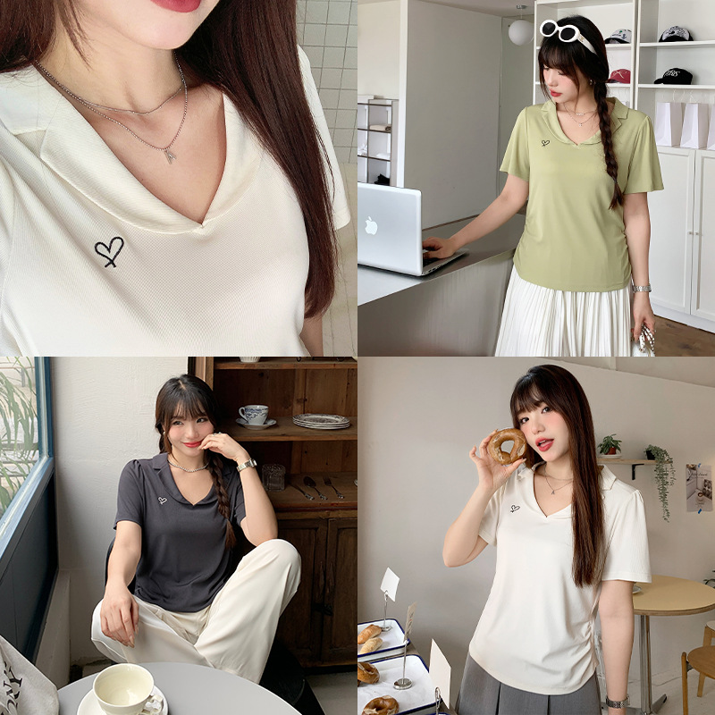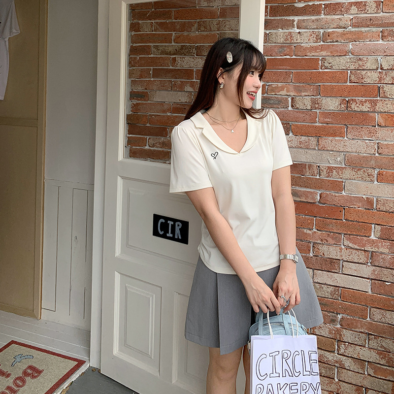 | nameOriginal | Women's Shoulder Bubble Sleeve Slimming V-Neck T-Shirt for Summer Chubby Girls Large Size Tight Waist Pleated Short Sleeve Embroidered Top 62876 |