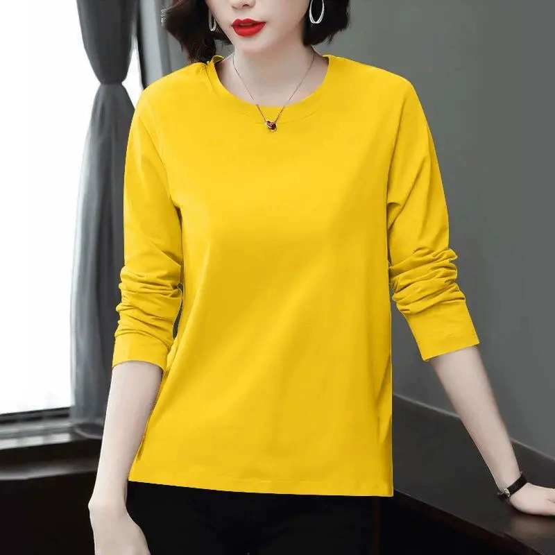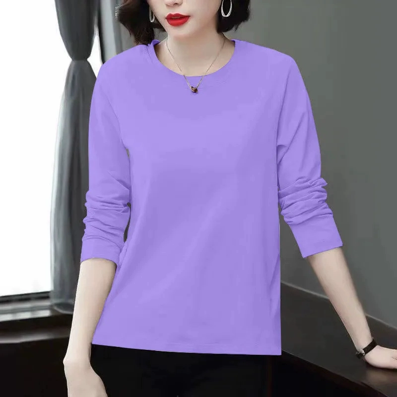 Women’s single piece solid color long sleeve large size loose T-shirt