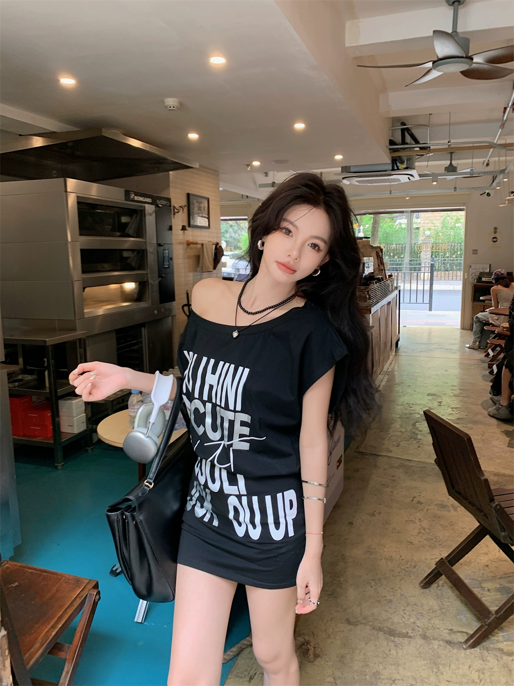 | nameOriginal | Women's slanted shoulder summer design short-sleeved dress |