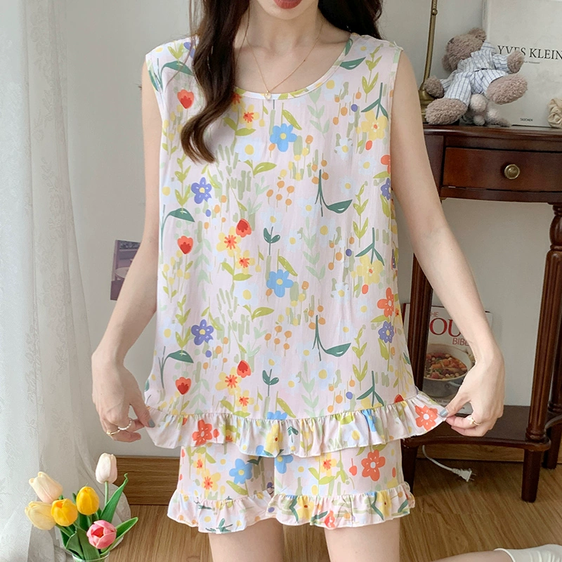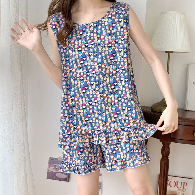 Women's Sleeveless Back Shorts Home Clothes Small Fresh Cotton Silk