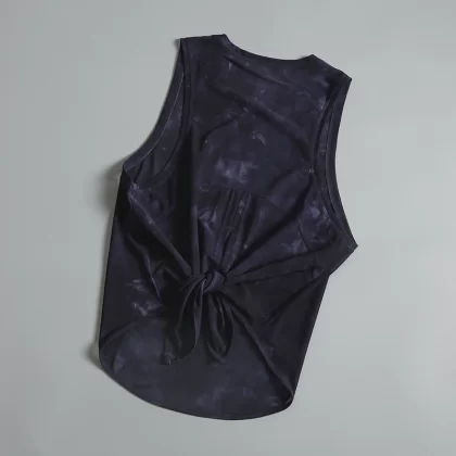 Women’s sleeveless wearing mesh tie -dyed shirt yoga clothing