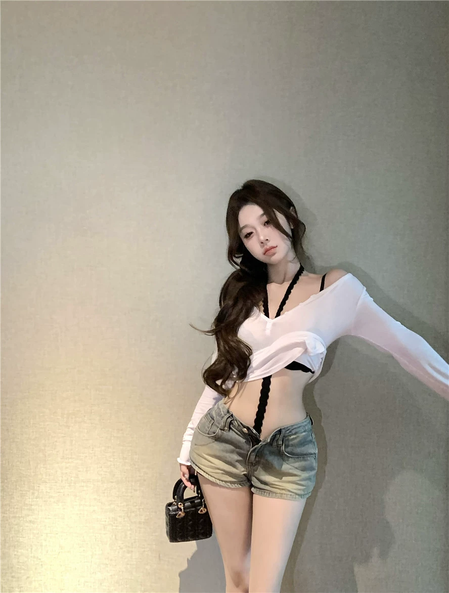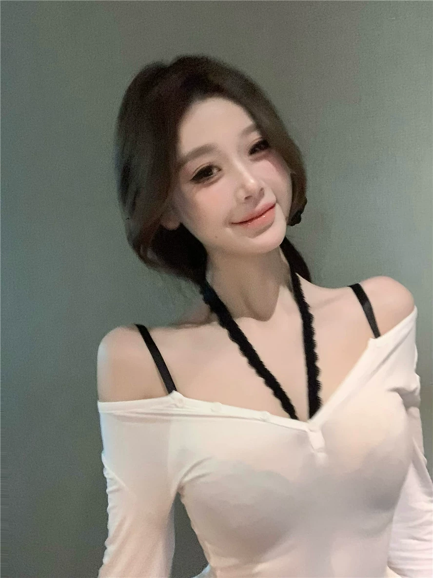 | nameOriginal | Women's slightly see-through slim fit white top long-sleeved T-shirt |