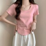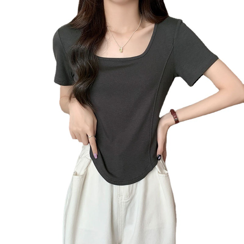 | nameOriginal | Women's slim-fit T-shirt with square collar and shoulder, solid color summer new western style age-reducing Fishbone short shirt  |