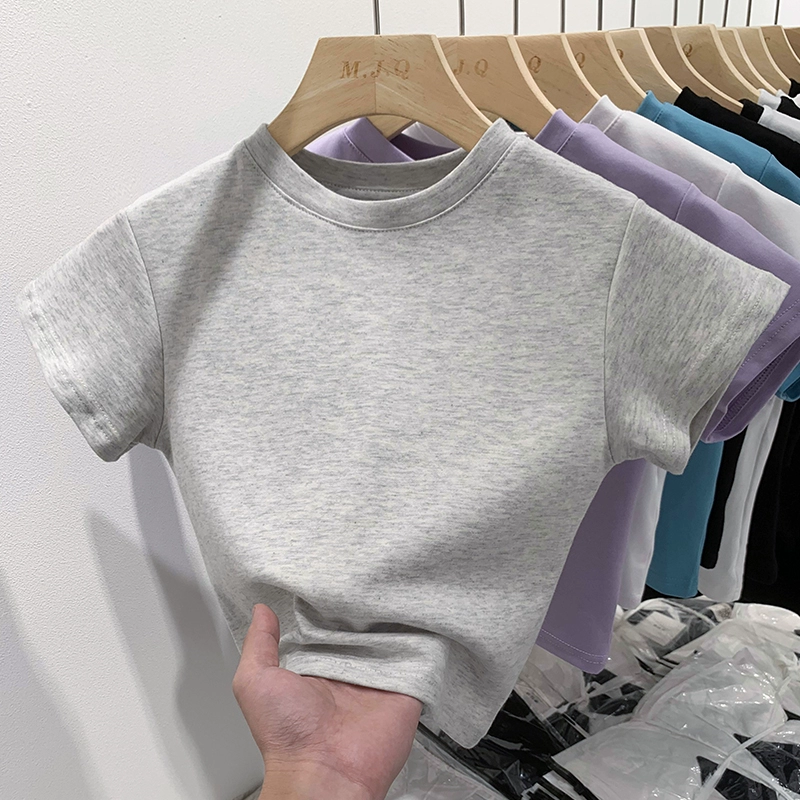 | nameOriginal | Women's slim-fitting high-waisted bottoming top with short sleeves |