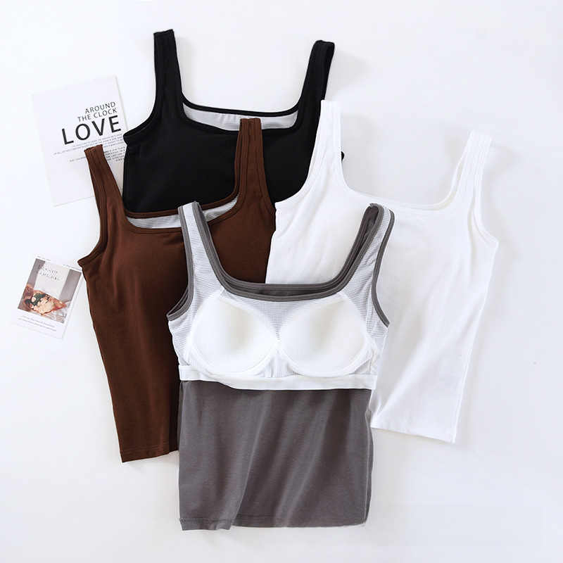 | nameOriginal | Women's Sling Vest with Chest Pad Cup One-piece Inner Wearing Outer Wearing Sleeveless All-match Square Collar Top Base Shirt Summer |