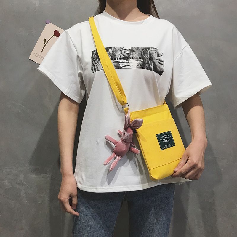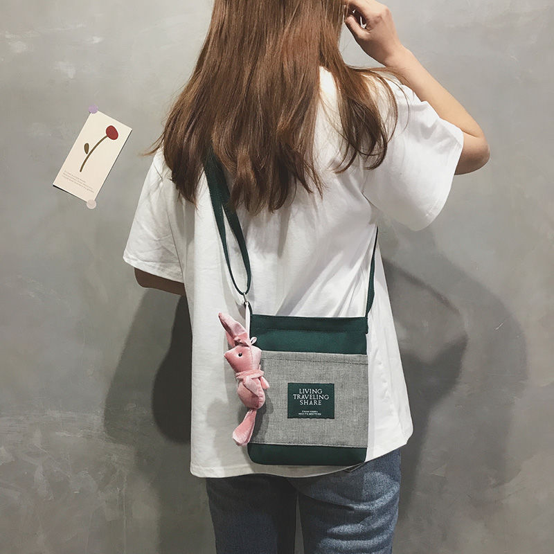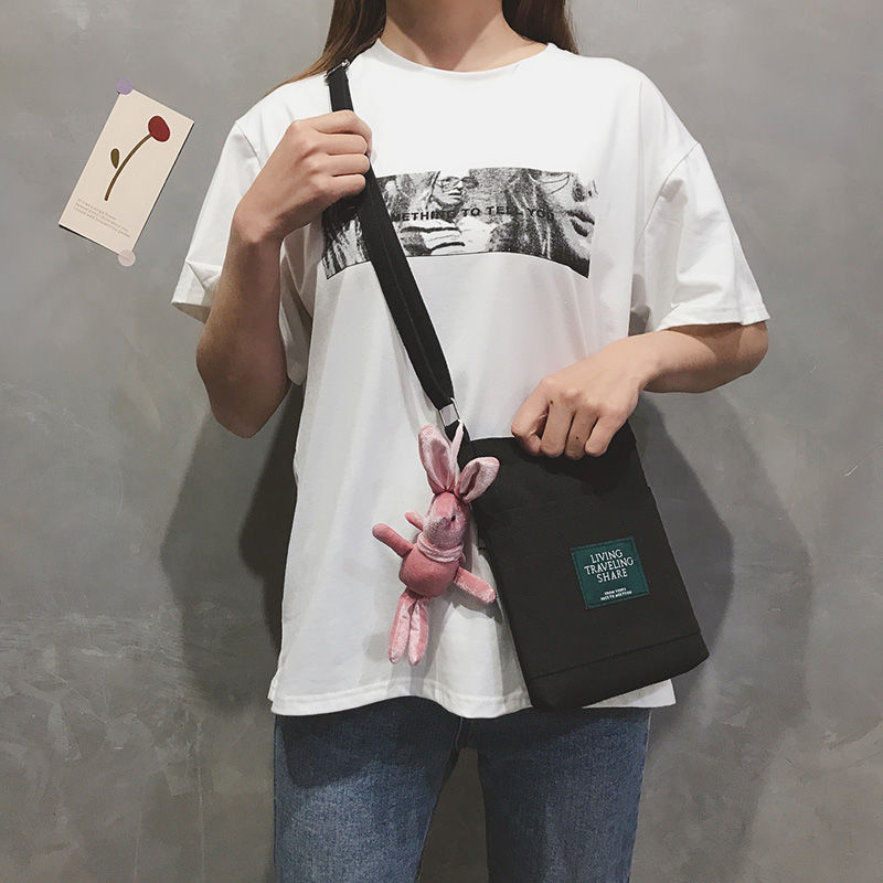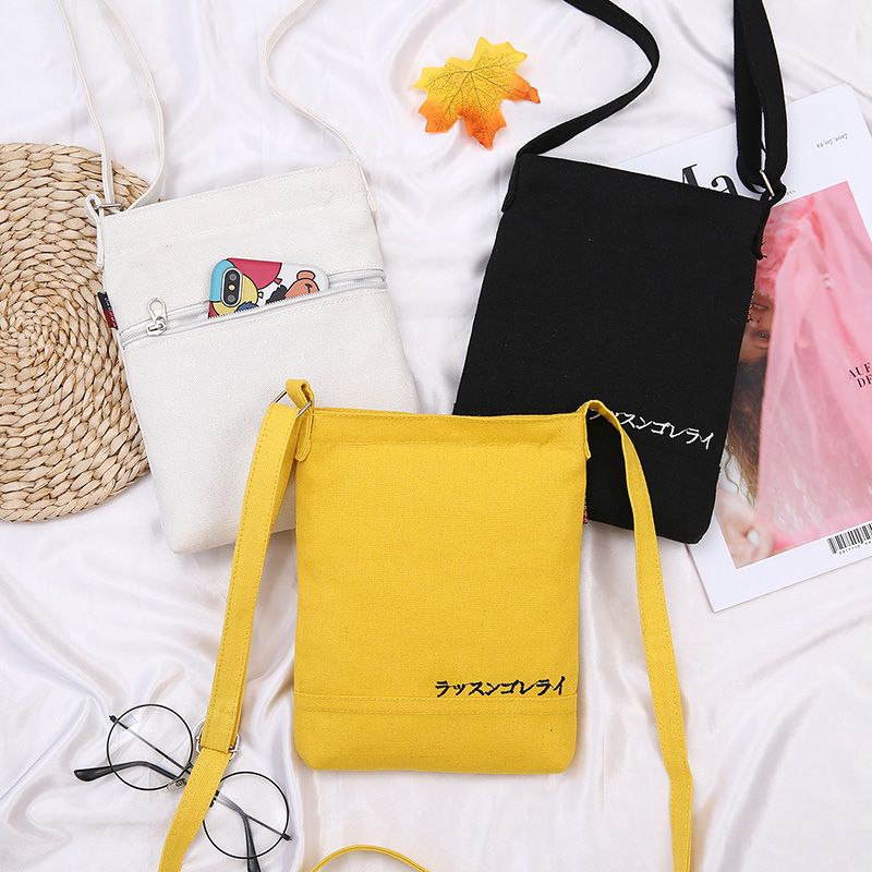 Women’s small bag with mobile phone New 2023 student Korean style embroidered simple all-match shoulder crossbody canvas bag