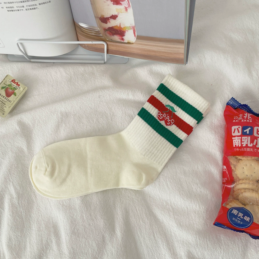| nameOriginal | Women's Socks Embroidered Cherry Letter Stripes Korean Socks |