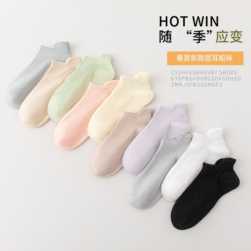 | nameOriginal | Women's socks spring and summer breathable solid color short cotton low-top low-cut heel ear ankle protection short ankle socks |