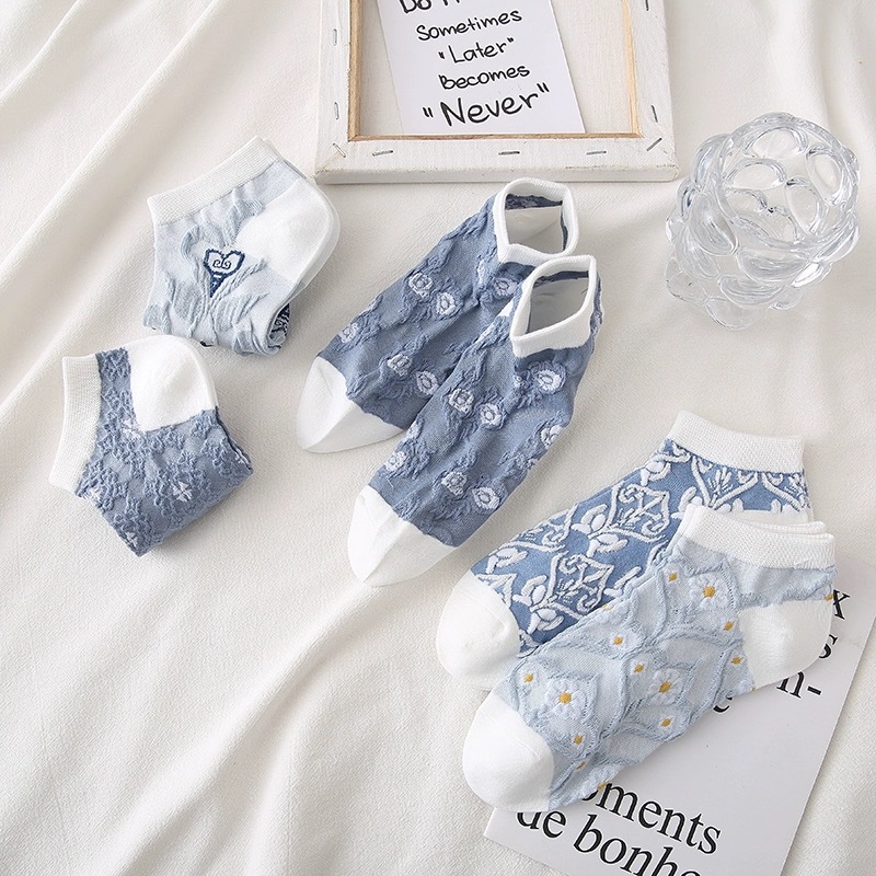 | nameOriginal | Women's socks spring and summer new student shallow mouth JK socks Japanese ins embossed small flower boat socks breathable mesh invisible socks |