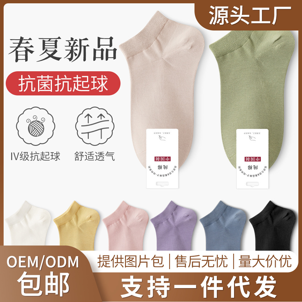 Women’s socks wholesale socks spring and summer thin boat socks cotton sweat-absorbent antibacterial breathable cotton short tube summer solid color