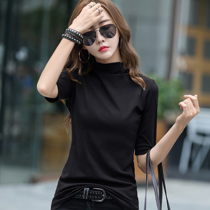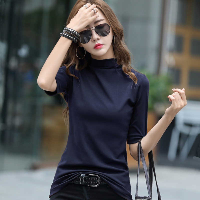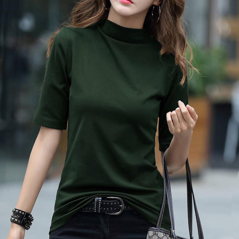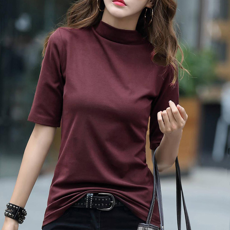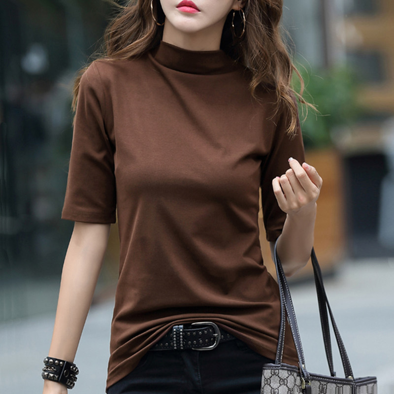 | nameOriginal | Women's Spring and Autumn Brown Half-high Collar Base Shirt with Middle Sleeve Inner Top Slim-fit Stylish Fashionable Pure Cotton Long Sleeve T-shirt |