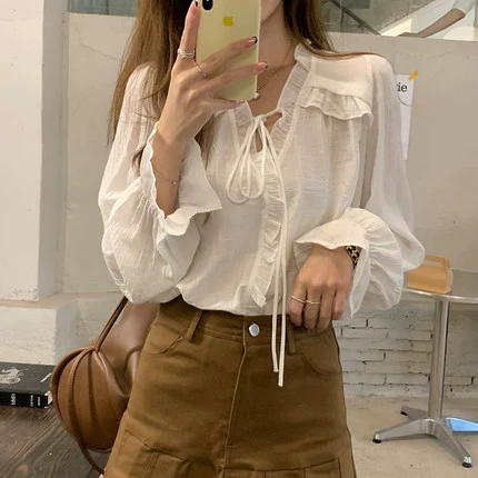| nameOriginal | Women's spring and autumn design bell sleeves with bow on chest |
