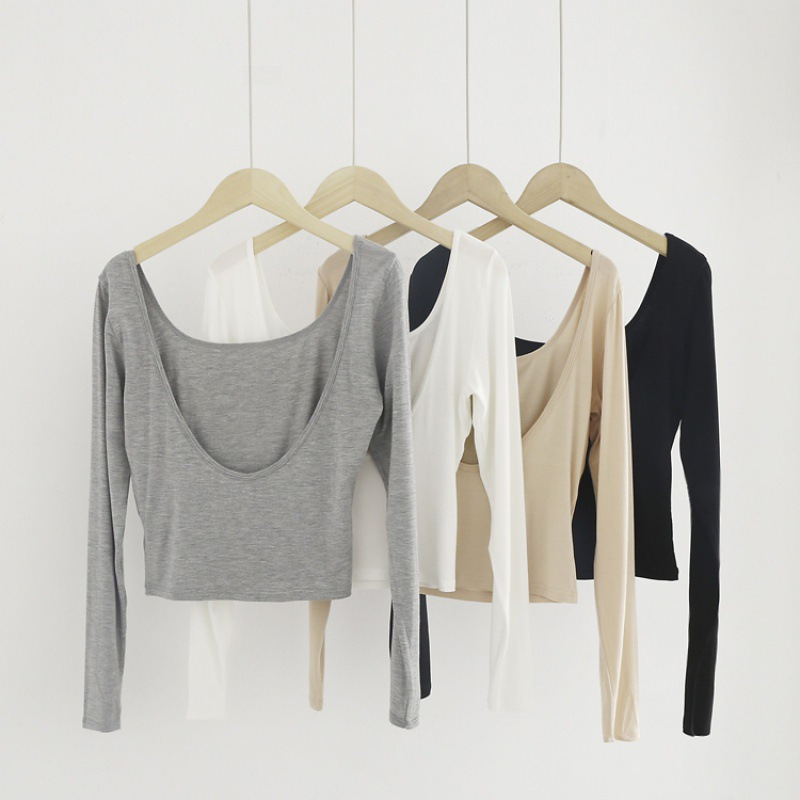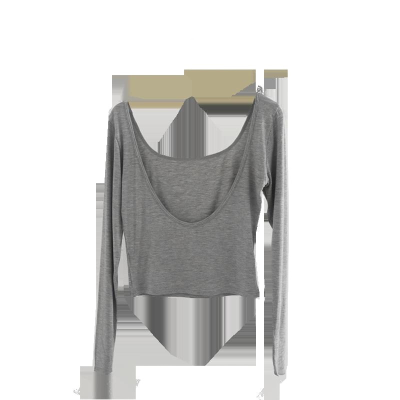 | nameOriginal | Women's Spring and Autumn Long-sleeved Shirt Black Thin Tight Inner Half Low Neck Large Backless Top |