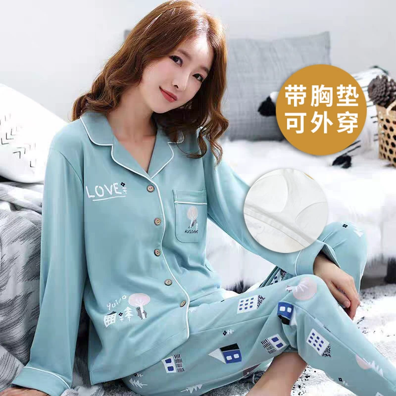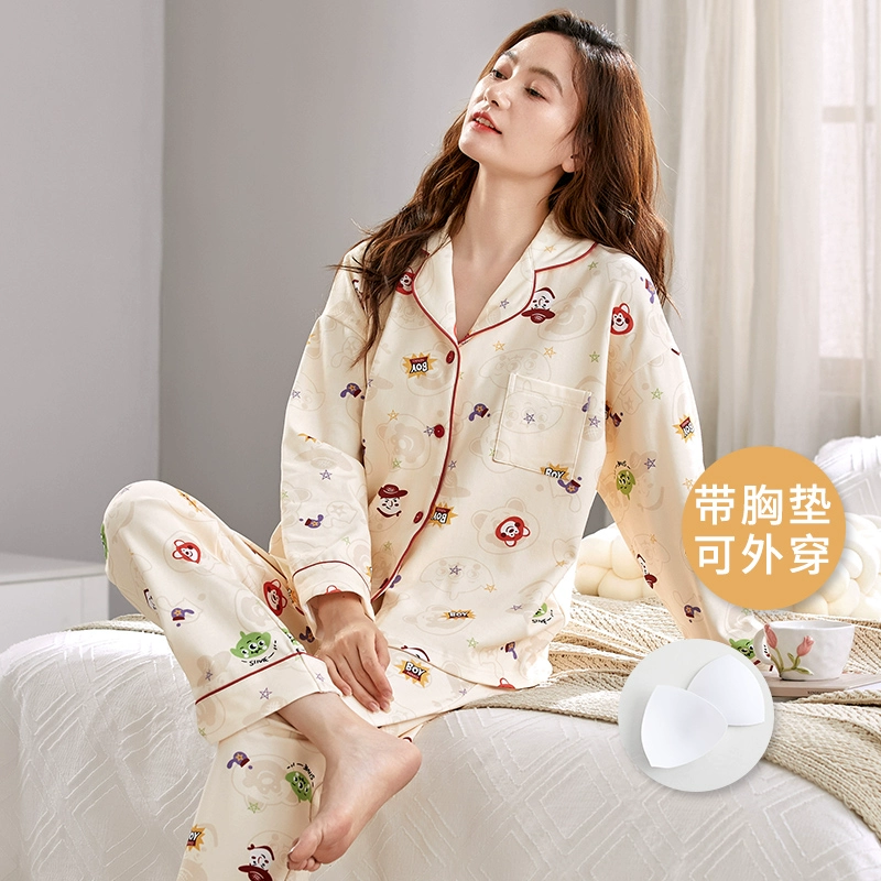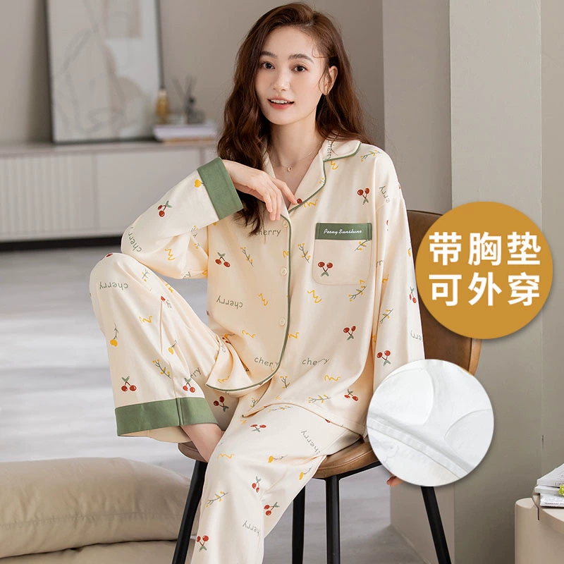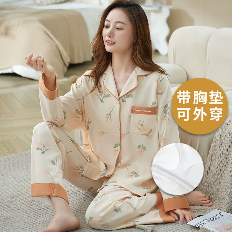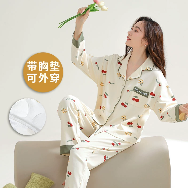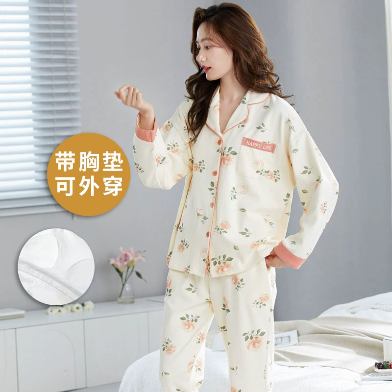 | nameOriginal | Women's Spring and Autumn Pure Cotton Korean Style Floral Pajamas with Breast Pad |