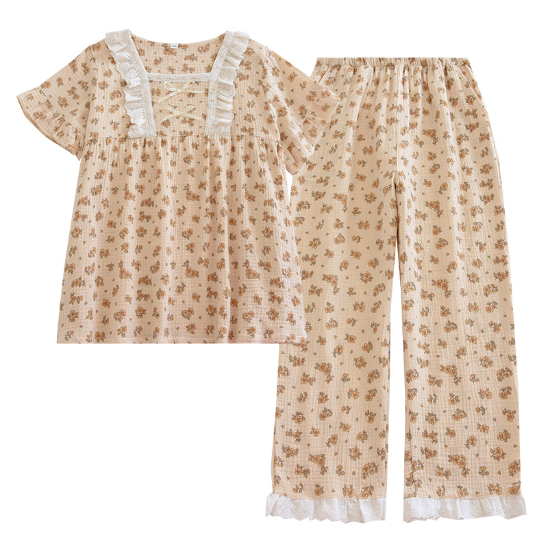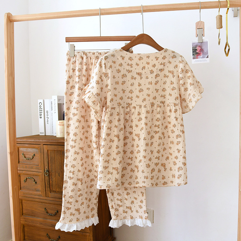| nameOriginal | Women's Spring and Autumn Sweet Princess Style Cotton Home Clothes Women's Spring and Summer Crepe Cotton Short-sleeved Loose Summer Cute Suit |