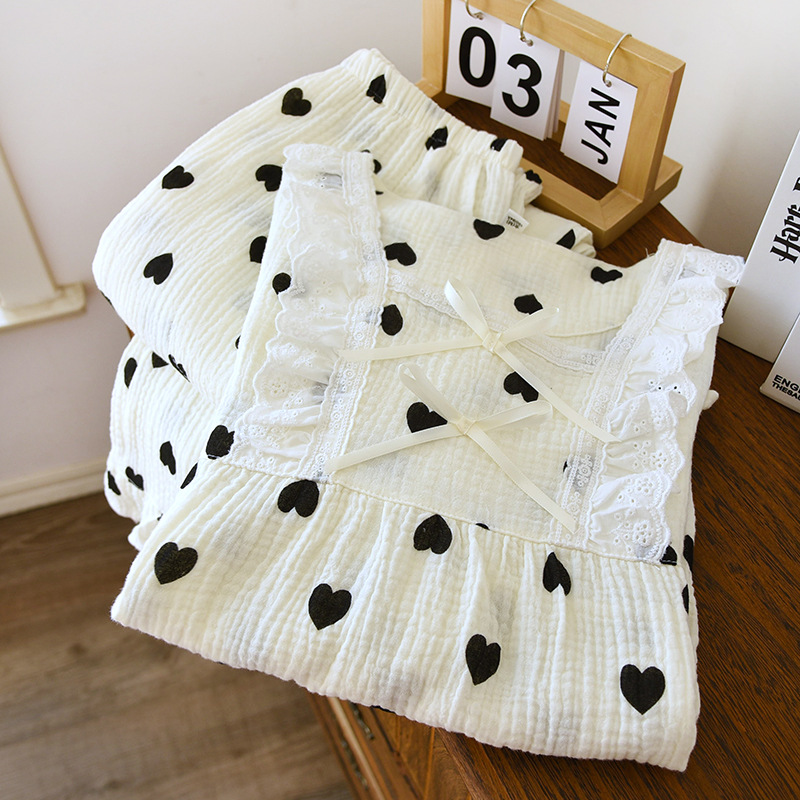 | nameOriginal | Women's Spring and Autumn Sweet Princess Style Cotton Home Clothes Women's Spring and Summer Crepe Cotton Short-sleeved Loose Summer Cute Suit |