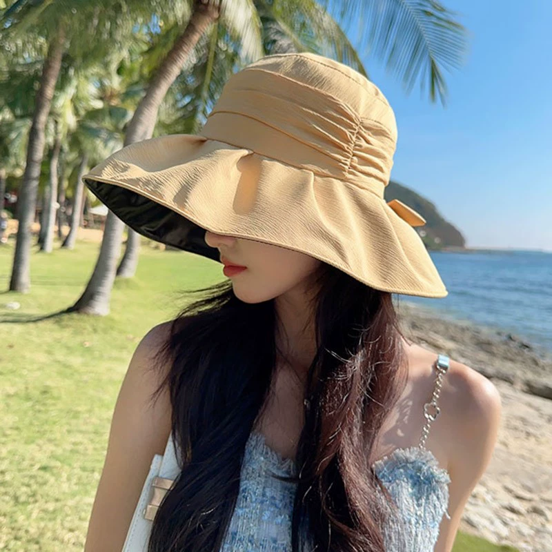 Female spring and summer bow of big eaves elegant sunscreen hat