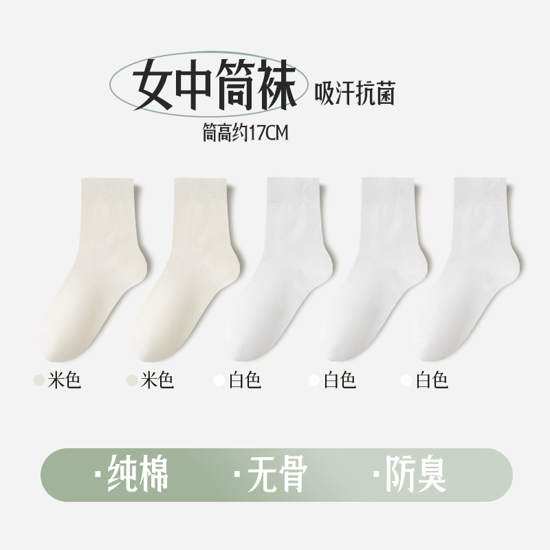 Women's Spring and Summer Pure Cotton Antibacterial Autumn Boneless Socks