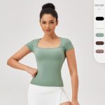 Women’s Spring and Summer Square Collar Sports Short-sleeved Slim-fit Tight Quick-dry Running Fitness T-shirt Naked Breathable Yoga Top
